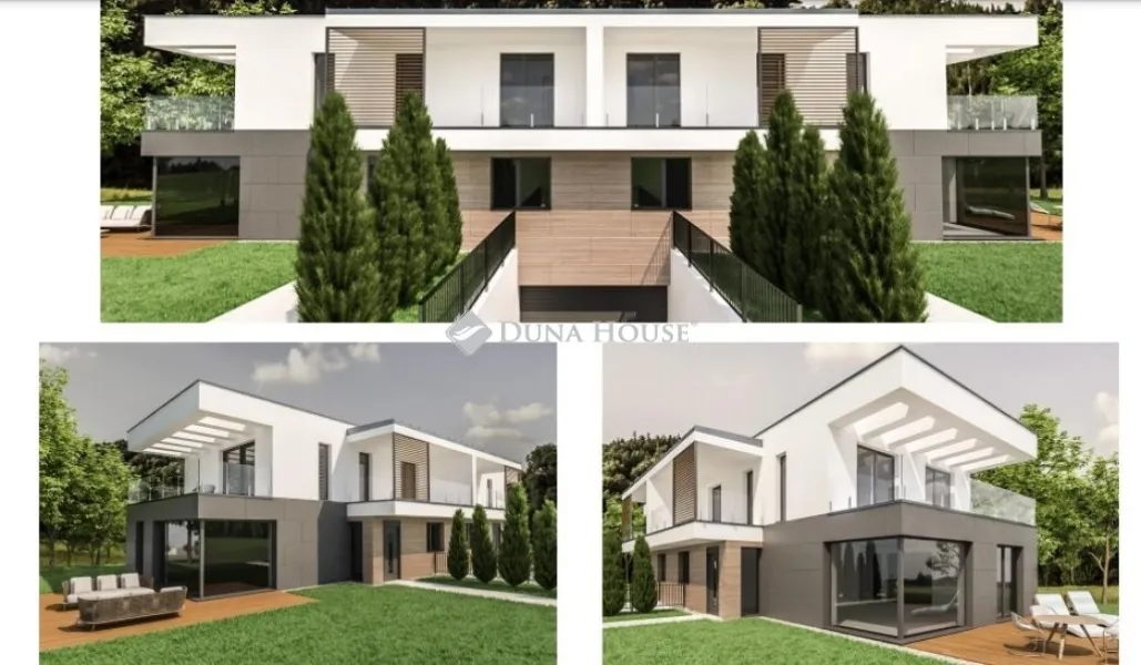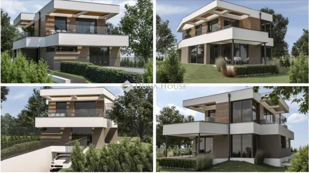 MŰSZAKI TARTALOM: épület szerkezet pillér vázas monolit vasbeton, Porotherm tégla falaképület teljes alapterülete alatt pince kiépítve, gépkocsi beállók és tárolók számára elektromos gépkocsi töltő a pincében található. AA+ kategóriás, 20 cm külső hőszigetelés, az épület külső burkolata vegyesen nagy táblás kőlap, illetve kapart színvakolatalu-fa nyílászárók, 3 rétegű üvegezéssel, levegő-hőszivattyú padlófűtés és mennyezeti hűtés – fűtés hővisszanyerő szellőzőrendszer friss levegő folyamatos pótlására. Üvegpanel korlátok rozsdamentes acél szerkezeten elektromos zsalúzia és redőny rendszerek, választható szaniterek, szerelvények, választható hideg és meleg burkolatokválasztható beltéri ajtók, okos telefonról vezérelhető intelligens otthonmegoldás előkészítésriasztó és kamera rendszer előkészítése, elektromos kert és garázskapu fűthető garázslejáró, kert füvesítése, parkosításra előkészítve, földalatti esővíztartály öntözővíz tárolására automata öntözőrendszer, napelem fogadó szerkezet. Az építkezés jelenleg 40%-os készültségben van, a beruházás befejeztével a szilárd útburkolat is elkészül.