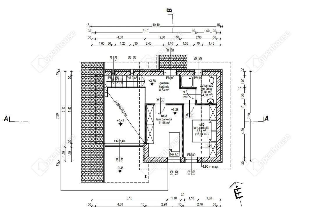 A tágas nappalin kívül még három hálószoba van , amiben gardrób is kialakítható.