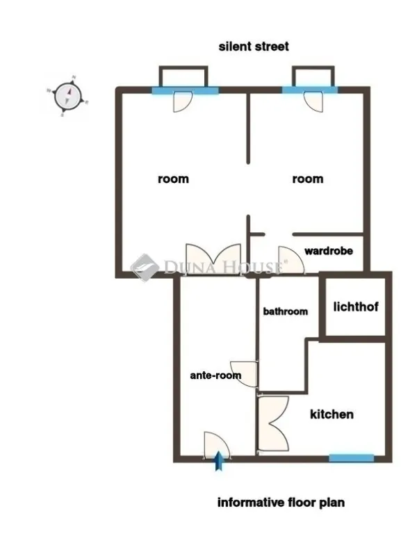 Az ingatlan egy csendes mellékutcában található egy liftes társasház 2. emeletén.
