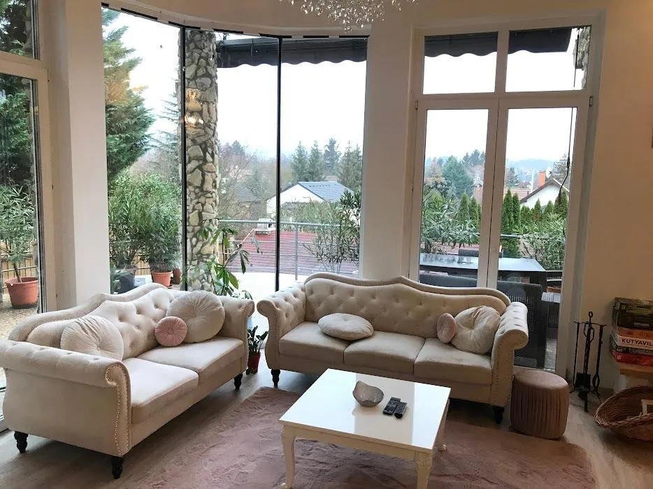 Az OTP IngatlanPont kínálatában! Budapest II/A kerületben, Pesthidegkút csendes utcájában található ez a gyönyörű 2022-ben felújított 420 m2-es, 3 szintes álomotthon, örök panorámával. A házban 7 szoba található, és minden extra amit csak el tud képzelni. A ház minőségi alapanyagokkal saját részre készült! A ház központja a csodálatos étkező-konyha-nappali, melyet a kilátás tesz fejethetetlenné, és a kandalló otthonossá. Gépészet és felszereltség: - 3 rétegű nyílászárok és egy - 32 W hőszivattyú is gondoskodik, de a - kandalló is hangulatos alternatíva lehet hidegebb időkben. Az örök panorámát 2 kisebb és egy hatalmas terasz teszi igazán élvezhetővé. Az egyedi méretre gyártott bútorok, -hatalmas méretű gardrób, -a legdrágább Vinyl és laminált padlólap, -különleges mozaik csempék, -design villanykapcsolók és -exkluzív ámulatba ejtő csillárok mellett, -mindenhol új wifis hűtő-fűtő klíma. - az egész házra kiterjedő tűzjelző, - új, modern riasztó rendszer, - vízbetörés jelző a medence szintjén, - mind intelligens, okos otthon rendszerre kötve. A ház rendelkezik ezen felül: -beépített porszívóval, -medence térben új ipari légkezelő rendszerrel, -kaputelefonnal, -szerver szobával, -pánik szobával, -elektromos redőnnyel. A legfelső szinten található: - 2 nagy hálószoba, - gardrób és a - varázslatos fürdőszoba egyedileg gyártott bútorral, élmény zuhanyzóval, szabadon álló káddal és dupla mosdóval teszi igazi kikapcsolódássá a felfrissülést. Az emelet egy - saját nagyméretű nappalival is rendelkezik, valamint a - mosókonyha is itt kapott helyet, mely akár fél szobának is használható. - 2 külön teraszról gyönyörű panoráma tárul elénk. Földszintre érve meseszép tágas terek fogadnak, a nappalit a strukturált panoráma ablak teszi még egyedivé. - klasszikus modern hangulatú nappali várja, hogy megpihenjünk egy fárasztó nap után - kandallóval, - a vele harmonizáló konyhával és - étkezővel. Ezen a szinten is található - 2 nagy hálószoba és egy - gardrób, a fenti - fürdőszobához hasonlóan élmény zuhanyzóval és egyedi bútorral, valamint helyett kapott - egy spájz is - az örök panorámát egy hatalmas terasz teszi élvezetessé árnyékolóval. Alsó szinten egy igazi wellness és kikapcsolódó központ vár. - Egy hatalmas fűtött, feszített víztükrű medence, ellenáramoltatóval mely alkalmassá teszi az igazi sport úszásra is - medencéhez automata vegyszer adagoló tartozik - jakuzzi, - szauna, - fürdőszoba, gőzkabinnal és élményzuhannyal, - mini konyha, Amennyiben ez nem lenne elegendő a kikapcsolódáshoz - egy hangulatos klub szoba, amiben egy - léghoki asztal, - csocsó asztal és - pingpong felszerelés valamint - darts is helyett kapott a klub szoba másik részében, - egy mozi sarok, valamint - edzőterem is várja, hogy élmény legyen itt tölteni minden napot. Ezen a szinten található még egy - hatalmas gardrób szóba, - több tároló helység is. (Külön lakrésszé alakítható ki ezen a szinten. Látványtervek rendelkezésre állnak) A ház felső két szintje 2022-ben teljesen fel lett újítva. A parkosított kertben természetesen a kerti tóban is lehet gyönyörködni. A kert különlegességei: -hatalmas raklapágy kényelmes vastag műbőrrel borított szivaccsal (200*240) felette árnyékolóval, -éjszakai kerti hangulat világítás, -hatalmas fedett filagória, alatta, -grill sütő és -beépített polc, - öntöző berendezés gondoskodik a mindig zöld gyepről. A kert végében pedig egy hőszigetelt 12 m2 kerti faház található. Kisebb gyerekeknek igazi játszó paradicsom, nyári lak melyet tavasztól-őszig akár kinti alvásra is használhatnak vagy tároló is lehet. (füst érzékelő és világítás is kiépítésre került benne) Az ház a tömegközlekedéstől pár perces sétára helyezkedik el. A környéken több iskola helyezkedik el, - Gustave Eiffel Francia Óvoda, Általános Iskola és Gimnázium, - Klebersberg Kuno Általános Iskola és Gimnázium, - Gyermekek Háza, - Waldorf Iskola, - SEK Budapest, - nem túl messze található a budapesti Amerikai Nemzetközi Iskola is. A közelben minden megtalálható: orvosi rendelők, sportolási lehetőség az újonnan átadott szabadidő park, valamint Gyarmati Dezső uszoda és teniszpálya. - bevásárlási lehetőségek (Stop.Shop., Széphalom, Hüvi) - a közelben több kirándulási lehetőség is adott (túra útvonalak, patak, Hármashatárhegy) Jöjjön el, nézze meg és szeressen bele. Az OTP Bankcsoport teljes körű ügyintézéssel áll az eladók és a vevők rendelkezésére! A kínálatunkból választott ingatlan finanszírozásához kedvezményes hitel- és lízingkonstrukciókat, lakástakarék- pénztári megoldásokat kínálunk. Az adásvételi szerződés megkötéséhez igény szerint megbízható ügyvédi közreműködést biztosítunk, és segítséget nyújtunk az adásvételhez kapcsolódó ügyek intézéséhez. M229611