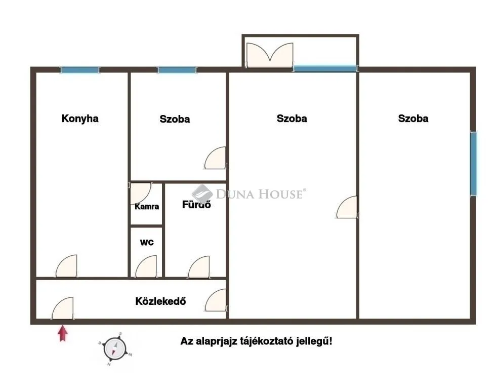 Alaprajz: három különnyíló szoba, praktikus elrendezés