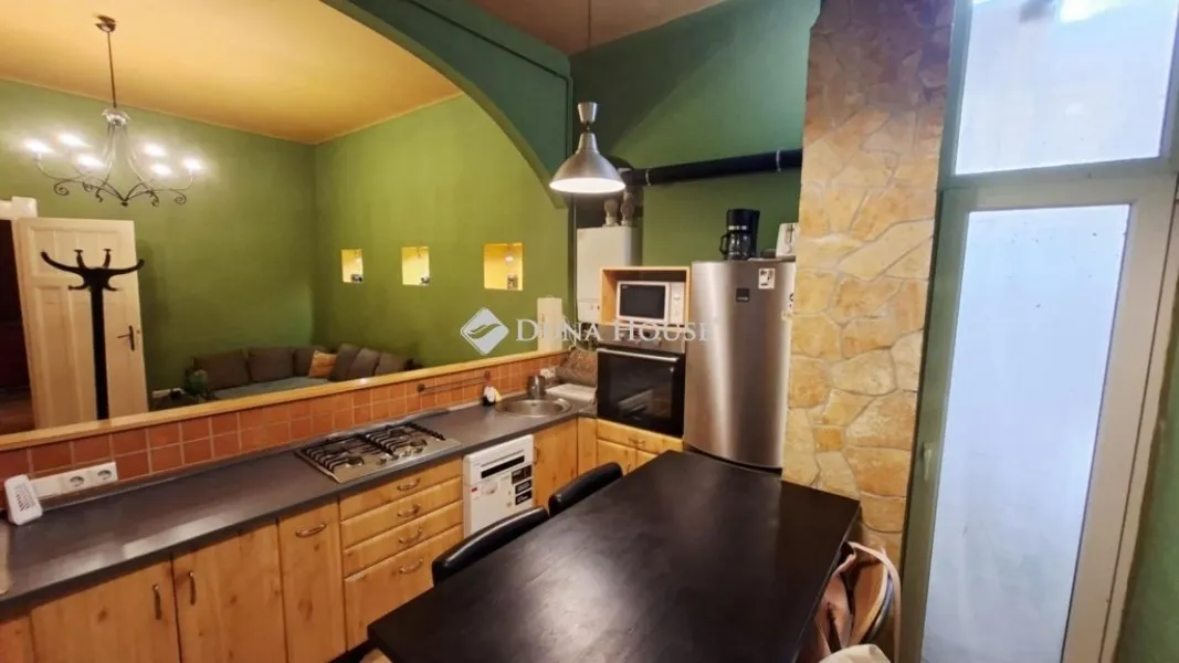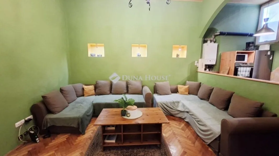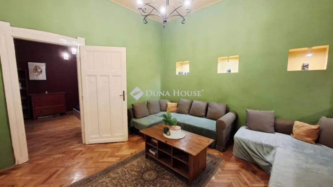 Eladó a VIII. ker. Palotanegyedben egy hangulatos, 84 m2-es, 2 hálószoba + amerikai konyhás-nappalis lakás!Gáz cirkó fűtéssel rendelkezik, külön hűtésre pedig nincs szükség, mivel a vastag falak pedig nem engedik túlmelegedni a lakást a nyári hőségben. A lakás ára tartalmazza a jelenleg benne található bútorokat is, így az új tulajdonos azonnal birtokba veheti.Az elektromos redőnnyel felszerelt ablakok a csendes belső udvarra néznek. A földszinti elhelyezkedés miatt a lakás közepes fényviszonyokkal bír, így egy kellemes hangulatvilágítás lett beépítve, ami az ingatlan barátságos atmoszféráját megadja.A ház 1909-ben épült, gyönyörűen felújított épület, melynek homlokzata helyi védettséget élvez. Az utcafronton Katona József tábláját is láthatjuk, aki egy ideig a ház nevezetes lakója volt.Ajánljuk ezt a lakást mindazoknak, akik egy hangulatos, már bútorozott lakást keresnek Budapest belvárosában, kiváló közlekedési lehetőségek mellett: hiszen a Blaha Lujza teret kb 5 perces sétával elérhetjük, ahol felszállhatunk az M2 metróra, a 4-6 villamosra és sokféle buszjáratra).Ideális választás lehet diákoknak, fiataloknak és befektetőknek is.A lakás egy magánszemély tulajdonában van és előnyt jelent, ha a vételár kifizetése euróban történhet.ENGLISH:A cozy, 84 m2, 2-bedroom + American kitchen-living room apartment is for sale in the Palace quarter!It has gas central heating, and there is no need for cooling, as the thick walls do not allow the apartment to overheat in the summertime. The price of the apartment includes the current furniture, so the new owner can take possession of it immediately.The windows with electric shutters overlook the quiet inner courtyard. Due to its ground floor location, the apartment has moderate lighting conditions, so pleasant mood lighting has been installed, which gives the property a friendly atmosphere.The house was built in 1909, it is a beautifully renovated building, and its facade is protected by local law. On the street front, you can also see a plaque commemorating József Katona, who was a notable resident of the house for a while.We recommend this apartment to all those who are looking for a cozy, already furnished apartment in the center of Budapest, with excellent transport options: Blaha Lujza square is about a 5-minute walk away, where you can get on the M2 metro, trams 4-6 and many bus lines).It can be an ideal choice for students, young people and investors.The apartment is owned by a private individual and it is an advantage if the purchase price can be paid in euros.