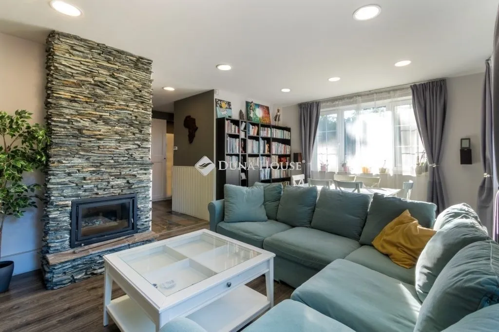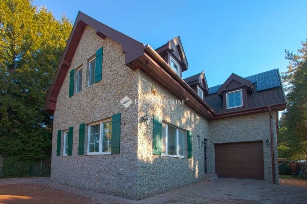 Angol stílusú, igényesen kivitelezett és berendezett, 2 szintes, 186 m2-es, 5 szobás családi ház Göd Dunához közeli, lakó-pihenő övezetében!Az 540 m2-es telken lévő, elő-, oldal és hátsó kerttel, benne örökzöldekkel, gyümölcsfákkal ölelt, szintenként 93 m2-es ház 2012-ben épült és mindössze pár perc sétára található a Duna-parttól, csárdáktól és a Bp-Szob kerékpárúttól. Az impozáns, egyedi külső megjelenés és kiváló elosztás gondos tervezői munka eredménye, fő szempont az élhető terek kialakítása és a praktikus helykihasználás, melyhez magas minőségű anyagok felhasználása és kivitelezés társult. A szürke terméskő homlokzat, a zöld spaletták, a fehér ablakok, a tetőtér megformálása az angol vidéki táj varázslatos világát hozza el. A délnyugati fekvésű, körbe napozott ház a telek utcához közelebb eső részén található, földszinti, emeleti helyiségei, 20 m2-es, WPC burkolatos terasza a gondozott kertre tájoltak, tökéletes privát szférát nyújtanak az itt lakók számára!A házban nappali + 4 hálószoba, 3 fürdőszoba, 29 m2-es lakáskapcsolatos, fűthető garázs, továbbá tárolásra használható padlás van.A földszinti 64 m2-es lakótérben tud együtt lenni a család, a 24 m2-es, kiváló fényviszonyokkal és terméskő burkolatos, vízteres kandallóval rendelkező nappaliban, mely a nagyobb létszámú étkezések helyszíne is, vagy a 18 m2-es, teljesen felszerelt, gépesített konyha-étkezőben, melyhez egy kis kamra is tartozik és ahonnan szép időben a teraszra, a kertbe is kiléphetünk. Az előszobából nyílik a zuhanyzós fürdőszoba, egy kabátos gardrób, illetve közvetlenül mehetünk a garázsba, ahol a gépészet is helyet kapott. A nappalit és a konyha-étkezőt a közlekedő köti össze, a tereket kihasználva itt van még egy gardrób, innen tudunk szép, kényelmes lépcsőn felmenni az emeletre.Az emeleti 93 m2-en 4 szobát, 2 fürdőt találunk, melyek tágas közlekedőről nyílnak, kellő kényelmet, szeparáltságot biztosítanak egy több tagú család számára is. Különleges, apartmanos jellegű elhelyezést kínál a 18 m2-es szülői hálószoba, ahová a 15 m2-es szülői fürdőszobán keresztül juthatunk és amelyből nyílik még egy 9 m2-es, ablakos gardrób is. A 13, 12 és 9 m2-es szobák az ablakok révén szép világosak, beépített szekrények segítik a tárolást.A lakótérben nincsenek fűtőtestek. A fűtés hőszivattyúról vagy vízteres kandallóról megoldott, emellett hűtő-fűtő inverteres klíma is kiválthatja a hőmérséklet szabályzást. A ház jól szigetelt, 10 cm grafitos szigeteléssel Porotherm téglából épült, aljzat és födém szigeteléssel ellátott. A hőleadás padlófűtéssel történik, valamint a konyhai részen falfűtéssel is. Minden helyiség külön termosztátról szabályozható. A garázs szintén fűthető. Az ablakok 7 légkamrás három rétegű üvegből készültek a maximális komfortért. A tetőre napelem került, aminek kapacitása 5 KW. Fúrt kút, automata öntöző rendszer kiépítve. Elektromos szigetelt garázskapu, automata kapu, riasztó és kamera rendszer telepítve van.A kert utca felőli oldala térkővel burkolt, ahol több gépjármű is parkolhat kerítésen belül. A hátsó kertben található egy téglából épült csónak tároló, amibe minden hobbi és kerti eszköz befér.Budapesti vagy Pest-megyei ingatlan beszámítására, amennyiben az megfelelő lehet, a vételár ötven százalékáig lehetőség van.További kérdés esetén, vagy amennyiben megtekintené az ingatlant, kérem keressen bizalommal.