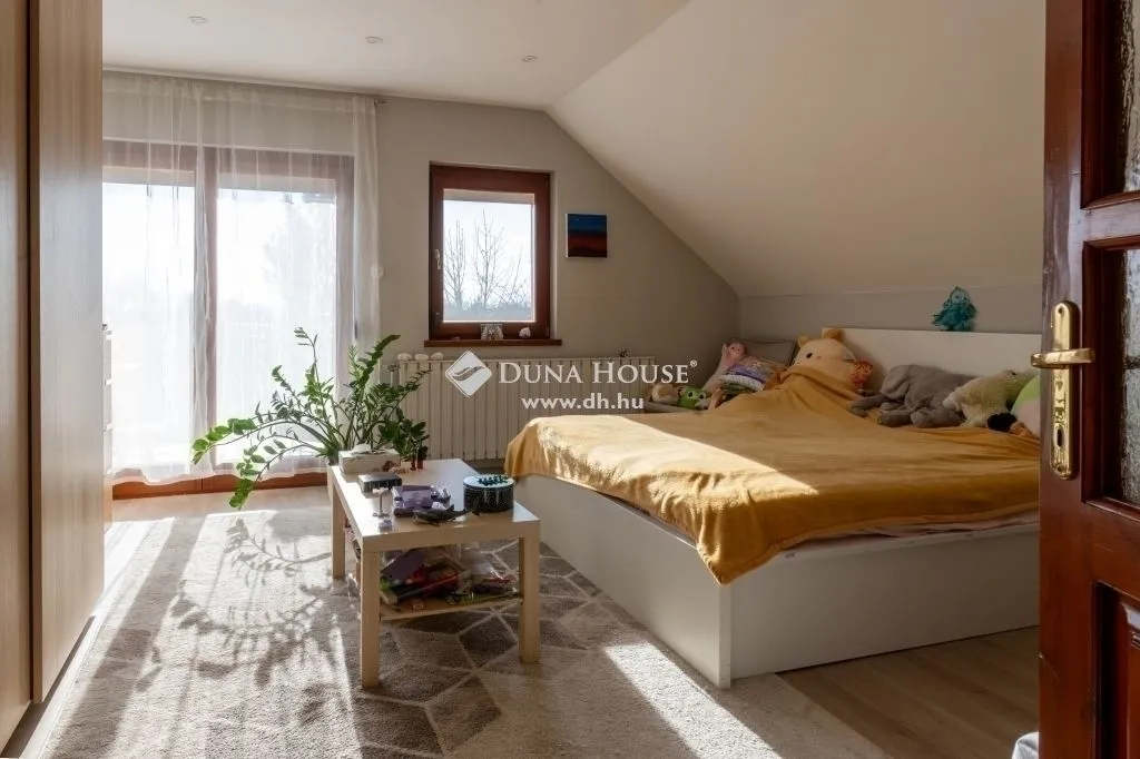 Eladó tágas, sok lehetőséget rejtő lakás Fót Kisalag városrészének elején134 nm-es lakás egy családi ház emeletén, saját, kizárólagos használatú bejárattal és önálló közműórákkal. Az ingatlan különlegessége a hozzá tartozó, kb. 100 nm-es, beépíthető tetőtér, mely ideális lehet például további szobák, dolgozószoba, hobbitér vagy edzőhelyiség kialakítására.A lakás elosztása:amerikai konyhás nappali3 külön nyíló hálószobafrissen felújított fürdőszobák3 külön WCerkély panorámás kilátással a Budai-hegyekreTovábbi jellemzők:saját kert (~100 nm)három garázs, az egyik szerelőaknával, elektromos kapuvalúj gázkazán, új villany- és vízvezetékekmodern új konyhai gépek: új főzőlap, sütő, mosogatógép (10 év garancia)három darab új klímaberendezés (garanciális)elektromos kapu és garázsajtóelektromos autó töltő csatlakozósaját fúrt kút – locsoláshoz vagy akár háztartási célokra is ideálisAz ingatlan kiváló választás többgyermekes családok számára, de akár két generáció együttélésére is alkalmas lehet, tekintettel a külön kialakítható élettérre a tetőtérben.További információért vagy időpont-egyeztetésért várom hívását!
