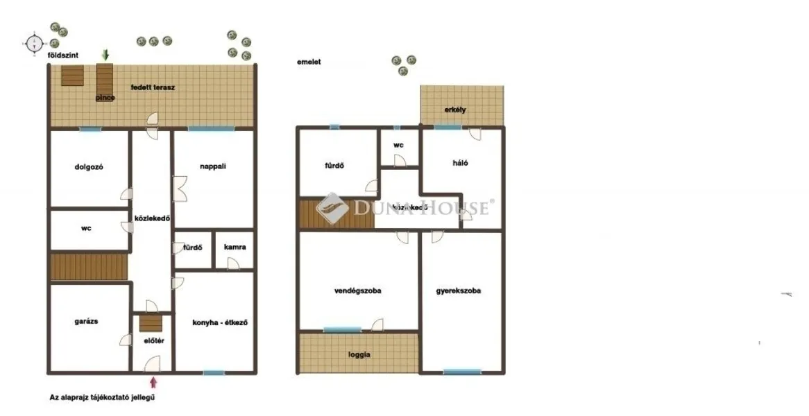 Az emeletre fa lépcső vezet, a közlekedőből nyílnak a helyiségek: a 3 külön bejáratú szoba, kádas fürdő, szeparált mellékhelyiség és közlekedő. A környezettel való kapcsolatot az utcára néző szobából nyíló 6,90 m2-es loggia és a kertre néző szobából nyíló 4,50 m2-es erkély biztosítja.