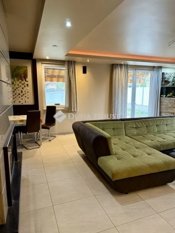 Budapest XVIII. kerületében, Almáskert családi házas, dinamikusan fejlődő részén eladó egy 164 m²-es, tégla építésű, duplakomfortos ikerházfél, amely 577 m²-es saját telekrésszel és garázzsal rendelkezik.Az ingatlan kiváló állapotú, tágas, világos terekkel és igényes, modern kialakítással várja új tulajdonosát.A ház a garázsnál kapcsolódik az ikerfélhez, ezáltal teljesen szeparált, intimitása és önállósága megmaradt.Főbb jellemzők:- Lakóterület: 164 m²- Telekrész: 577 m²- Elrendezés: amerikai konyhás nappali + 3 hálószoba + 2 fürdőszoba- Szintek: földszint + emelet- Garázs közvetlen bejárattal az előszobába- Nagy terasz árnyékolóval- Több autós beállási lehetőség az udvaronHelyiségek elosztásaFöldszint: Előszoba, Amerikai konyhás nappali + étkező, Kamra, Zuhanyzós fürdőszoba, TeraszkapcsolatEmelet: 3 hálószoba (2 gardrób helyiséggel), Háztartási helyiség, Kádas fürdőszobaMűszaki felszereltség és extrák:- Tégla falazat, dryvit szigeteléssel- Műanyag nyílászárók + szúnyogháló + árnyékolók- Cserép tetőfedés- Padlófűtés + radiátoros fűtés + kandalló- Kombicirkó kazán + klíma- Elektromos kapu, riasztórendszer- Spotvilágítás, álmennyezet, laminált padló + igényes burkolatok- Mennyezetig érő L alakú konyhabútor- Árnyékolt terasz, rendezett kertA közművek önálló mérőórákkal rendelkeznek, az ingatlan per- és tehermentes.A bútorzat megegyezés tárgyát képezi.Elhelyezkedés és környék:A környék családbarát, az utca rendezett, a környék infrastruktúrája kiemelkedő:- Buszmegálló pár perc sétára- Ferihegyi vasútállomás, 50-es villamos a közelben- Spar, gyógyszertár, szépségszalon, fitneszterem- Iskola, óvoda, orvosi rendelő, minden elérhető közelségbenEz az ingatlan ideális választás:- családoknak, akik tágas, kényelmes, jól megtervezett otthont keresnek- pároknak, akik minőségi életérzést szeretnének a városközeli, zöldövezeti környezetben,- akik kész, azonnal költözhető házat keresnek kiváló műszaki állapottal.Ez az otthon a kényelem, a tágasság és a modern megoldások tökéletes kombinációja várja új tulajdonosát Almáskert egyik legjobb utcájában.