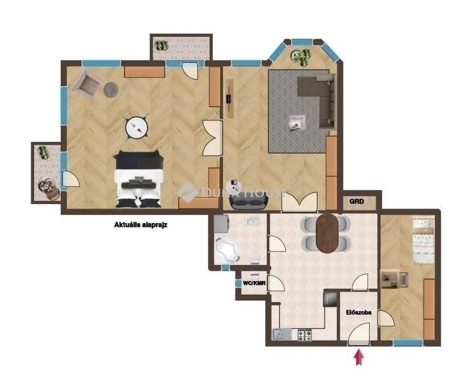 * Polgári hangulat, remek elosztás: 3 nagy méretű, külön bejáratú szoba