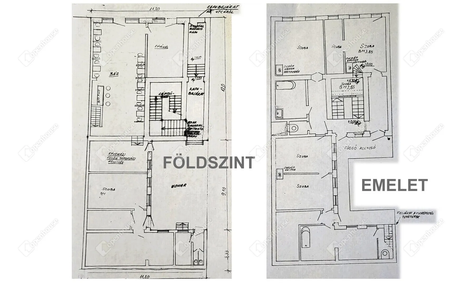 - 14 szoba illetve különböző funkciójú helyiség található két szinten, az emeleti lakrészek nagypolgári stílusban épültek a századfordulón