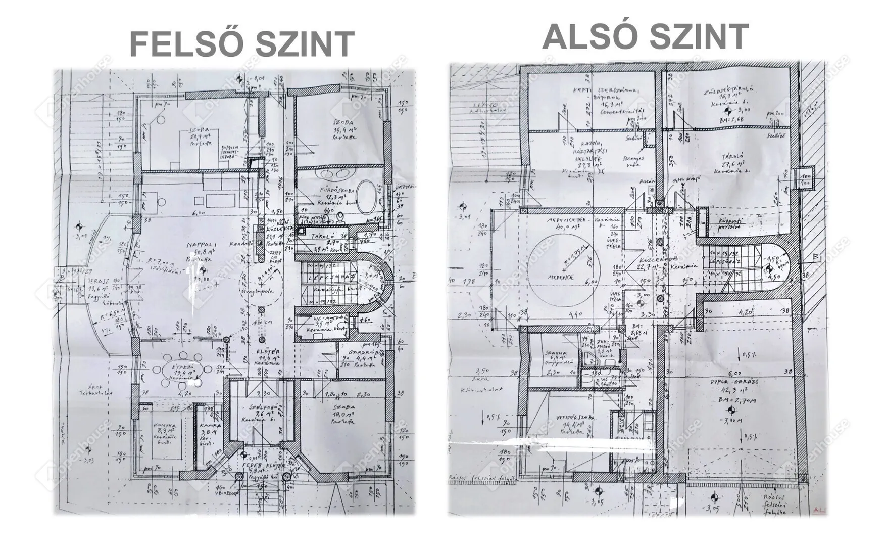 - 3 tágas hálószoba, fürdőszoba dupla kézmosóval, bidével, vendég wc, tároló, gardrób és lépcsőház van még az emeleten