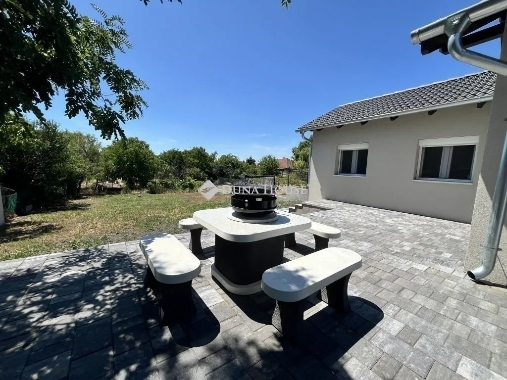 Eladó Fót egyik legkedveltebb részén egy teljes körűen felújított, 78 m²-es családi ház, 571 m²-es telken. A felújítás során csak a főfalak maradtak meg, minden más vadonatúj. Ariston kombi gázkazán. Teljesen új villanyhálózat. 3,5 kW-os Samsung klíma. 3 rétegű, korszerű nyílászárók. Kamerarendszer a biztonság érdekében. Minden szobában internet- és TV-kábel kiépítve. Fúrt kút és csepegtető rendszer az előkertben. Parkolás több autó számára. Az ingatlan elrendezése: amerikai konyhás nappali + 3 külön nyíló hálószoba. A 571 m²-es telek rengeteg lehetőséget rejt magában, aminek csak a képzelet szab határt. Kiváló közlekedés Budapestre, akár autóval, akár tömegközlekedéssel. A közelben Lidl, Príma, iskola, óvoda, és minden fontos szolgáltatás megtalálható. A természet közelsége, az erdők és mezők karnyújtásnyira ideális választás azoknak, akik nyugodt, mégis jól megközelíthető helyen keresnek modern otthont. Érdeklődni a megadott elérhetőségeken lehet, megtekintés rugalmasan. Független banki tanácsadásért is keressen bizalommal!