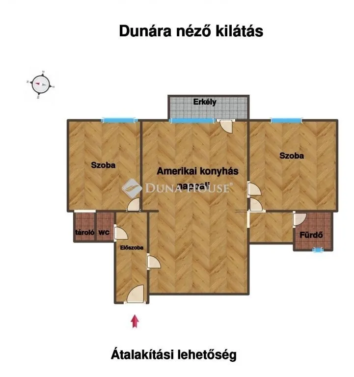 Eladó a II. kerületben (Újlak), a Duna-parton, liftes társasház 3. emeletén található, 76 nm-es, kiváló beosztású, felújítandó lakás, amely jelenleg külön konyhával és 2 külön bejáratú nagy szobával rendelkezik, és a kialakítása miatt könnyen amerikai konyhás nappalival rendelkező 2 hálószobás lakássá alakítható, akár 2 fürdőszobával is. A lakáshoz 3 nm-es, Dunára néző erkély tartozik.