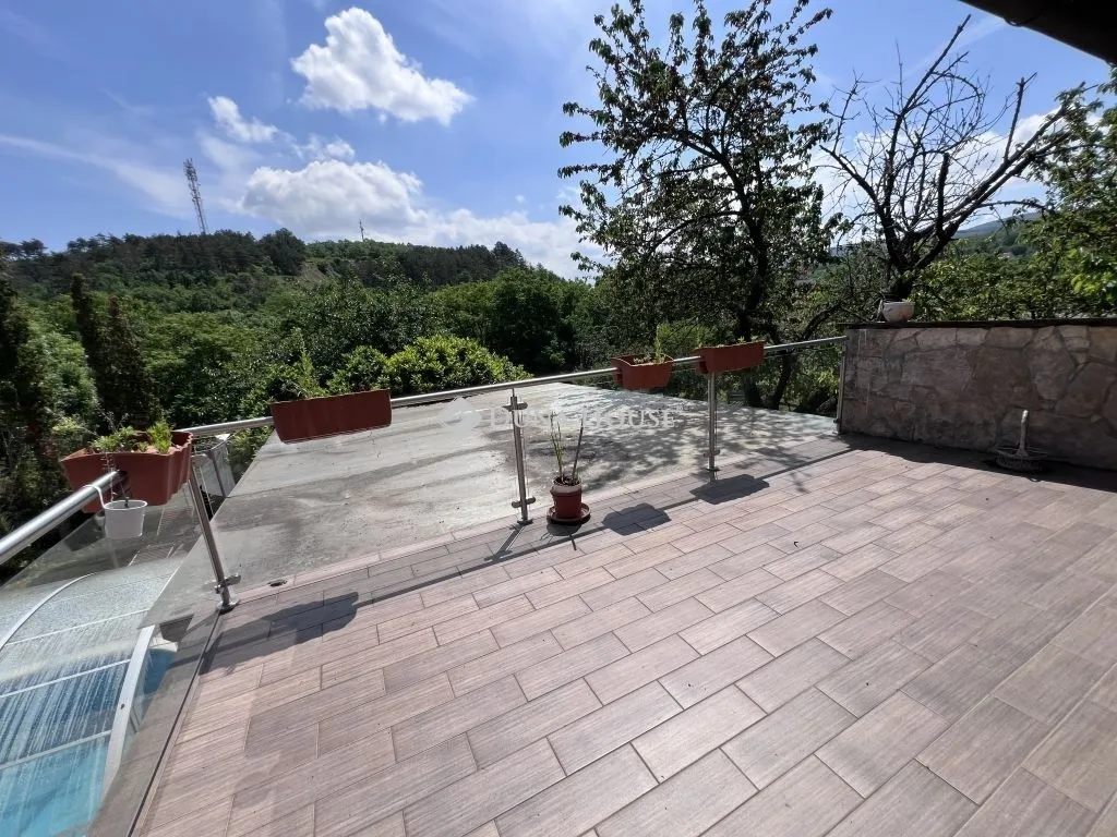Ez az 1950-es években téglából épült, napfényes ingatlan nyugodt, kellemes környezetben található, domborzati adottságainak köszönhetően egyedülálló panorámát nyújt a környező tájra. A kertben fűthető medence, fedett wellness-fitness részleg pezsgőfürdővel, valamint fedett terasz biztosítja a teljes kikapcsolódást. A telek nagysága 1125 m², automata öntözőrendszerrel, teljes kamerarendszerrel felszerelt.