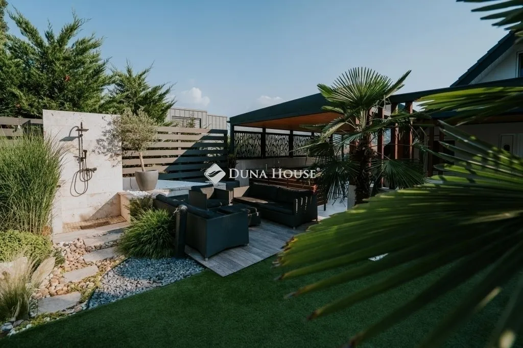 A mediterrán stílusú kertben egy 22 m²-es, fűthető medence várja, amely az év minden szakaszában használható. A 20 m²-es nyári konyha Európa legnagyobb epoxigyanta pultjával és modern felszereltségével tökéletes helyszínt kínál családi és baráti összejövetelekhez. A kert automata öntözőrendszerrel és csöpögtető szisztémával gondozott, így Önnek csak a pihenésre kell koncentrálnia.