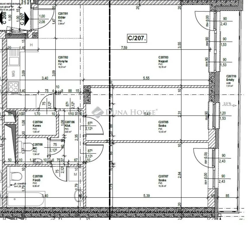 | Fűtés | távfűtés egyedi méréssel |