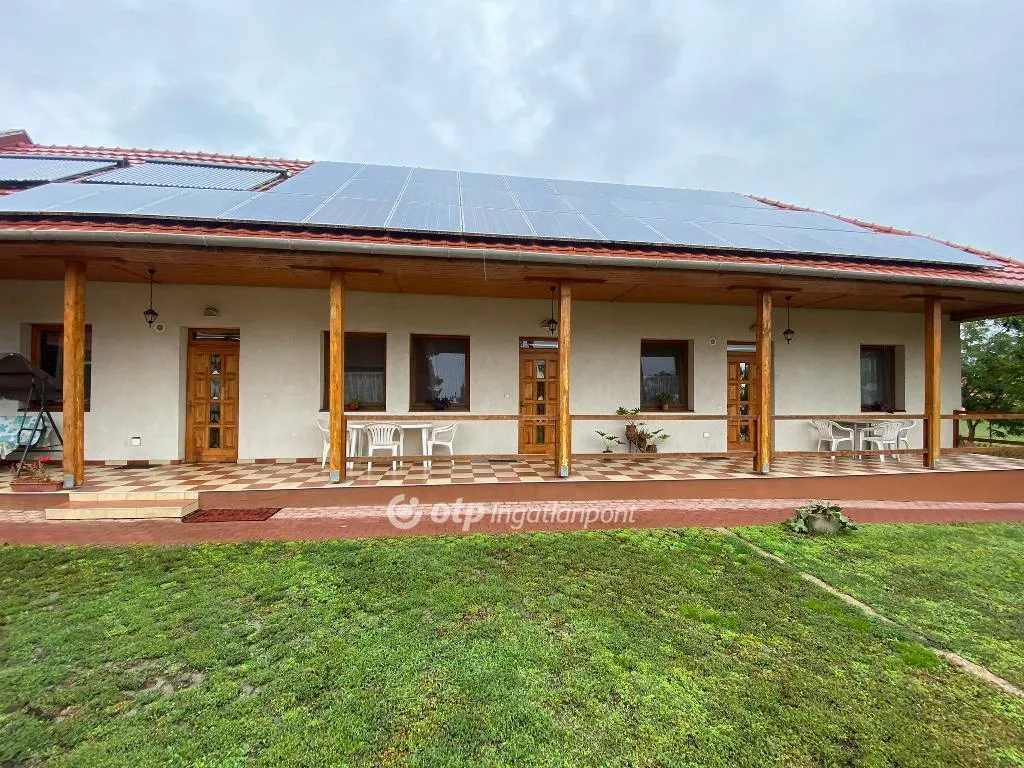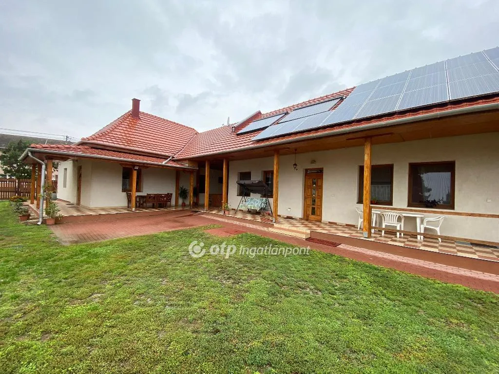 A HAJDÚ-BIHAR MEGYEI EGYEKEN, A TELEPÜLÉSKÖZPONTBAN ELADÓ EGY KITŰNŐ ÁLLAPOTBAN LÉVŐ, 193,34 M2 HASZNOS ALAPTERÜLETŰ, 4 EGYSÉGES, 5 SZOBÁS, ÖSSZKOMFORTOS, ÖSSZKÖZMŰVES VENDÉGHÁZ, NAPELEMES ENERGIAELLÁTÁSSAL ÉS NAPKOLLEKTORRAL, 2806 M2-ES TELKEN, A TISZA FOLYÓTÓL 6 KM-RE, 15 KM-RE A TISZA-TÓTÓL (TISZAFÜRED)!!! A telken két épületből álló épületegyüttes található, tornáccal és fedett terasszal összekötve!!! Az egyik épület (régi) egy kb. 1945-ben épült paplakás volt, mely 2015-ben teljes körű külső-belső felújításon esett át (a tető is új), mögötte egy 2015-ben épült teljesen új építésű épület (új). A régi épület falazata vályog és tömör tégla vegyesen, az új épület pedig Porotherm 30-as téglából épült, 10 cm hőszigeteléssel, nemes vakolattal, födém fagerendás mindkét épületben, az újban 25 cm gyapot szigetelés, a régi épületben is 10 cm gyapot van a régi saralt fafödémen. A tetőn 10 kW-os napelem (33 db) és 2 napkollektor!!! Az épületegyüttes apartmanként működött évekig, melyben összesen négy önálló, külön bejáratos vendégszobaegység van kialakítva, a legutolsó apartman akadálymentes, de az egységek egy része össze is nyitható, azaz nagyobb családok, baráti társaságok több egységet egyben is használhatnak (lásd alaprajz)!!!