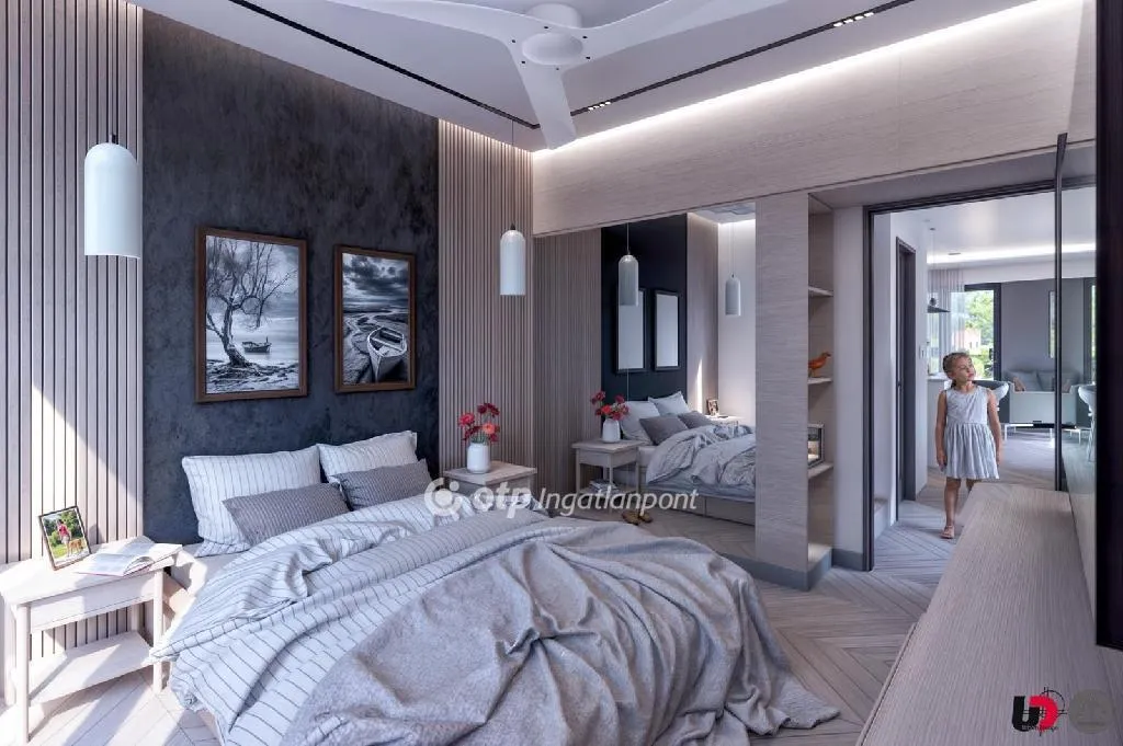 A 117 nm-es otthon földszintjén egy tágas, 30 nm-es amerikai konyhás nappali kap helyet, amely közvetlen kijárattal rendelkezik majd a fedett teraszra és az oldalkertre. Az előtérből nyílik a külön WC, a 7 nm-es fürdőszoba, valamint a 11 nm-es hálószoba, amely az előkertre néz. A földszintről lépcső vezet fel a tetőtérbe, ahol három hálószoba található - egy nagyobb, 19 nm-es ÉK-i, valamint két 9 nm-es DNY-i tájolású szoba. Itt kap helyet a tetőtéri fürdőszoba, a gépészeti helyiség, a gardrób, valamint egy közlekedő.