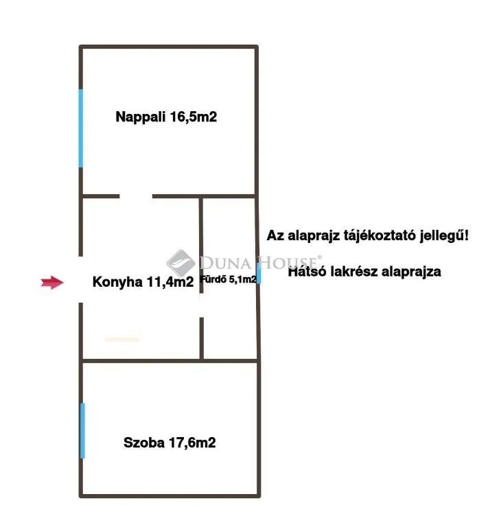 A hátsó részen egy külön bejáratú, praktikusan kialakított lakótér található, melyben 1 szoba, nappali, konyha és fürdőszoba WC-vel áll a lakók rendelkezésére.