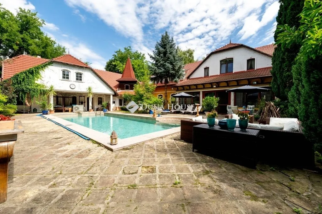 Történelmi Kúria Eladó Exkluzív Birtok a Tatai Régió SzívébenFedezze fel a páratlan eleganciát és nyugalmat, amelyet ez a különleges, több mint 100 éves kúria kínál mindössze 40 percnyi autóútra Budapesttől, a Bécs-Budapest tengely középpontjában.A festői, 8.451 m²-es ősfás birtokon fekvő, kastélyszerű kúria a Pannonhalmi Apátság egykori tulajdona, 1904-ben épült templomépítészeti módszerekkel, ma pedig teljes felújításon átesve a régi idők méltóságát ötvözi a 21. század kényelmével.Főépület 920 m² eleganciaA kétszintes főépületet kifinomult ízléssel alakították ki: -Földszint: exkluzív nappali kandallóval, házi könyvtár, képgaléria, gourmet konyha, étkező, télikert, veranda, 4 fürdőszobás lakosztály, vendégszalon és gardrób -Emelet: 8 fürdőszobás szoba, társalgó, zeneszoba, teakonyhaWellness és kikapcsolódásA zárt, szélvédett díszkertben: -Fűtött öko vízforgatós medence -Szaunaház és fitneszterem -Grillterasz -Garázs akár 10 gépkocsinakTovábbi épületek -Személyzeti épület: 4 különálló lakás, konyha és kiszolgáló helyiségekTermészet és biztonság kéz a kézbenA birtokot évszázados fenyők, tuják és ritka Ginkgo Biloba fák ölelik körül, teljes őspark jelleggel. A biztonságról korszerű kamera- és infrasorompó rendszer, valamint több mint 2 méteres kőkerítés gondoskodik.Infrastrukturális előnyök - Vezetékes víz, gáz, ipari áram -Saját artézi kút karsztvízzel -Internet, műholdas TV -Napelemes rendszer kialakítására alkalmas területEgy különleges hely, különleges célokraEz a birtok nem csupán otthon, hanem életstílus. Ideális: -Magánrezidenciának -Prémium vendégháznak vagy boutique hotelnek -Céges reprezentációs központnak -Rendezvényhelyszínnek vagy exkluzív retreat központnakKérjen személyes bemutatót és tapasztalja meg a múlt és jelen tökéletes harmóniáját.Egyedülálló lehetőség ritkaság a piacon.------------------------------------------------------------------------------------------------------------------------------------------------------------------------------------Forest Mansion Villa with Development Potential Idyllic Estate Near Tata, HungaryA rare opportunity to acquire a fully renovated, standalone forest villa estate surrounded by lakes and ancient woodlands offering tranquility, exclusivity, and significant development potential in a pristine natural environment.Location:Located in the peaceful outskirts of Tata, one of Hungarys most dynamic and culturally rich small towns, this estate lies just 40 minutes from Budapest via the M1 motorway, along the strategic ViennaBudapest axis.The property is nestled in an untouched, unpolluted environment, bordered by centuries-old lakes and forest, making it a truly unique natural retreat.Property Details: Land : 14,585 m² Main building: ~420 m², single-story brick villa Construction era: 1940s completely refurbished Layout: 6 ensuite guest suites ~100 m² elegant dining salon with fireplace Living room, home office, private library Mechanical room and utility spaces Dual entrance layout ideal for multigenerational living or separate guest/staff accessTechnical & Infrastructure Highlights: Independent transformer station (75 A electrical capacity, expandable to 3x400 A) Updated electrical and plumbing systems Modern insulation and new doors/windows Full sun exposure ideal for solar energy systems Peaceful, secure location with easy access to major routesDevelopment & Zoning:The estate is zoned as EK Tourism & Water Management, which supports a wide range of developments including: Hospitality, accommodation Commercial and service facilities Ecotourism, water sports, fishing, and aquacultureBuilding regulations: Maximum buildable area: 5% Maximum building height: 7.5 metersIdeal For: Exclusive private estate or retreat Boutique hotel or eco-resort development Wellness/spiritual retreat center Corporate getaway or executive training venue Multigenerational family residenceTimeless elegance, modern comfort, and endless potential a property that speaks to visionaries.For further information or a private viewing, please get in touch