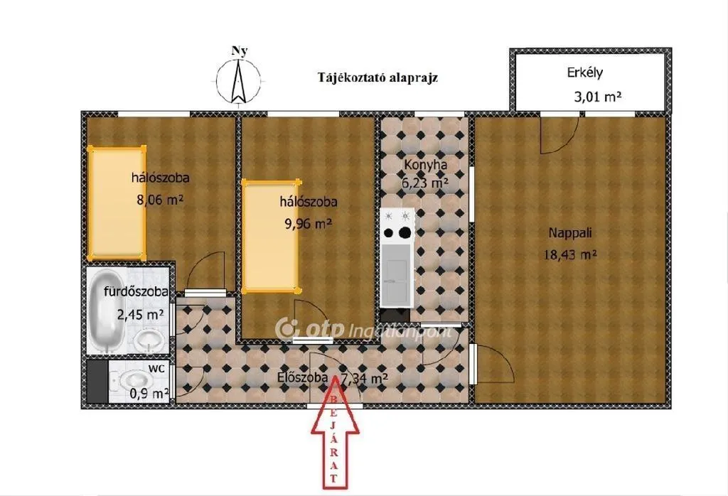 - nappaliból nyíló, 3 m2-es nyugati tájolású erkély