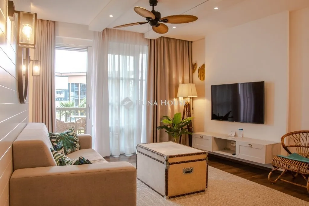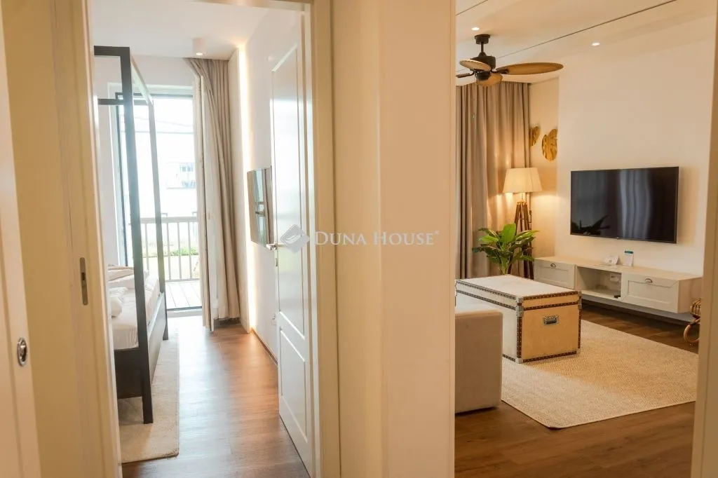 Stabil hozam, exkluzív környezet, prémium szolgáltatások ez a Balaland Resort.Kínálatunkban egy különleges elhelyezkedésű, örökpanorámás luxuslakás szerepel a Balaton egyik legnívósabb, prémium fejlesztésében, a szántódi Balaland Resortban.A 2020-ban épült, modern, 4 szintes társasház 1. emeletén található ez a 49 m²-es, világos, ízlésesen berendezett lakás, 8 m²-es erkéllyel, amelyről lenyűgöző kilátás nyílik a tóra és a Tihanyi-félszigetre. Főbb jellemzők:49 m² lakótér + 8 m² panorámás erkélyAmerikai konyhás nappali + 1 hálószobaKülön fürdőszoba és WCMindkét helyiségből kijárat a teraszraÖrök balatoni panorámaPrémium burkolatok, igényes belső kialakításSaját teremgarázshely és tárolóÖrökhasználatú, privát tóparti napozóhely, napernyővel és napozóágyakkal Balaland Resort szolgáltatások:Recepció, gondnoki szolgálatÁpolt, zárt kertBüfé és bár, reggeli rendelési lehetőséggelSzobatakarítás kérésreKerékpár-, SUP- és vízibicikli-kölcsönzésFolyamatos programok a szomszédos Balaland Hotelben, melyek az itt lakók számára is elérhetőkEz a lakás ideális választás mindazoknak, akik prémium kategóriás balatoni nyaralóra vágynak, vagy stabil, jól hasznosítható befektetést keresnek egyedülálló környezetben.Jöjjön nézzük meg együtt és szeressen bele!Amennyiben hitelre lenne szüksége, kiváló, szakmailag felkészült kollégánkkal a Credipasstól Ingyenes és Bankfüggetlen szaktanácsadás keretén belül biztosan megtalálják a lehető legkedvezőbb, személyre szabott konstrukciót.