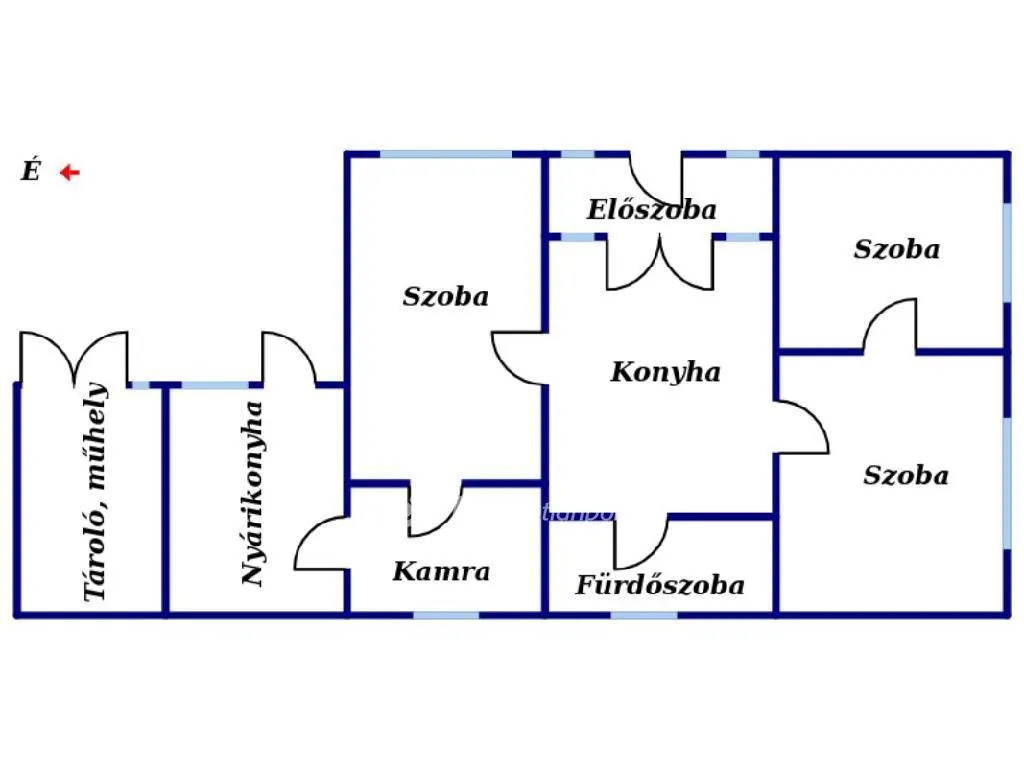 A 90 nm-es főépülethez épített melléképületben nyárikonyha és egy tároló található. A 13 nm-es nyárikonyha a főépületből is megközelíthető, a 12 nm-es tárolónak csak külső bejárata van.