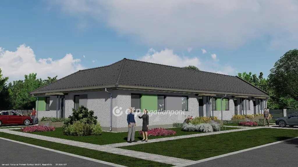 Pest vármegye, Kocsér belterületén új négylakásos könnyűszerkezetes társasház 60 m2-es hasznos alapterületű lakása, 998 m2-es telken eladó. Az ingatlan 2026. júliusi átadással, A energetikai besorolással, beton alapon speciális német szabványú KVH gerenda szerkezeten szendvicspanel szigeteléssel készül. Rétegrendje: gipszkarton, OSB lap, fa váz, 16 cm Rockwool szigetelés, OSB lap, 12 cm homlokzati hungarocell, nemesvakolat. A födém fa szerkezeten gipszkarton álmennyezettel, 2x10 cm Rockwool szigeteléssel készül. A fa szerkezetű tető fekete égetett cserép héjazattal és körben csatornával épül meg. A külső műanyag ablakok 3 rétegű üvegezéssel, redőny előkészítéssel, a bejárat kiváló minőségű biztonsági ajtóval kerül átadásra. A belső terek elválasztására minőségi átfogó tokos beltéri ajtók lesznek beépítve, a terasz előkészített betonszerkezettel és kiépített lépcsővel készül. A lakás egy amerikai-konyhás nappalival, kettő szobával, egy fürdőszoba-Wc helyiséggel, egy közlekedővel, és egy 15 m2-es terasszal tervezett. Az ingatlanban a közművek közül a háromfázisú (3x16 Amper) villany-, a vezetékes víz-ellátás önálló vízmérővel, a zárt rendszerű emésztő, valamint kerti locsolásra a fúrt kút telken belül megtalálható. Az otthon melegét lakásonkénti hőszivattyú biztosítja padlófűtéses hőleadással, alternatív megoldásként inverteres hűtő-fűtő klíma előkészítés is létesül. A melegvíz ellátását 100-120 literes Hajdú okosbojler biztosítja. A belső helyiségek laminált padló- és járólap burkolatot kapnak, a fürdőszoba és a WC-helyiség modern hidegburkolattal lesznek kivitelezve, valamint új szaniterek kerülnek beépítésre. Az ingatlan vételára tartalmazza a több rétegben készre dolgozott fehér festést, a villamos szerelvényeket és a lámpatesteket, valamint az utcai autótöltő előkészítést. A társasház szabadon álló, lakásonként elő- és hátsókert létesül. Gépjárművek tárolására az előkert ad lehetőséget. A térkövezés a vételárnak nem képezi részét, viszont a gépészeti előkészítéssel rendelkező konyhabútort tartalmazza. Az alapító okiratban minden lakás albetétesítésre kerül és saját padlásrész használat nyilatkozat is rögzítésre kerül. A padlás 35-38 fokos dőlésszögű tetőszerkezete lehetővé teszi, hogy lakásonként a födém áttöréssel beépíthető legyen. Az új tulajdonos az így keletkezett 25-30 m2 hasznos alapterületre igény szerint további helyiségeket alakíthat ki. Az udvar parkosítása és a kerítés építése a társasház feladata lesz. A kivitelező középáras szaniterekkel és burkoló anyagokkal tervez, készültségi foktól függően az ennél drágább beépítésű anyagok különbözetét vételár terhére elszámolják. Az ingatlan-egység a későbbiekben egy második sorházzal fog gyarapodni, a két telek között az Önkormányzat vállalásával a későbbiekben játszótér létesül. A társasház jelenleg szerkezetkész, a tető cserepezése folyamatban van. (2026.01.hó.). Az ingatlan elhelyezkedése kiváló, a közelben minden megtalálható: többféle bevásárlási lehetőség, iskola, óvoda, élelmiszerbolt, egészségügyi rendelő, benzinkút, Polgármesteri Hivatal pár száz méteren belül megközelíthető, a településen a tömegközlekedés megoldott. A hirdetés tájékoztató jellegű, az ingatlanról pontos adatokat a megtekintést követően a tulajdonos által elmondottak alapján tudunk garantálni! A vásárlás finanszírozásában az OTP támogatott és kedvezőbb kamatozású hitelkonstrukcióival tudunk segíteni díjmentesen, sorban állás nélkül! Az adásvételi szerződés lebonyolításához korrekt ügyvédi közreműködést tudunk ajánlani. Amennyiben felkeltettem érdeklődését, hívjon bizalommal! Eladó ingatlanokat keresünk meglévő és új ügyfeleink részére!
