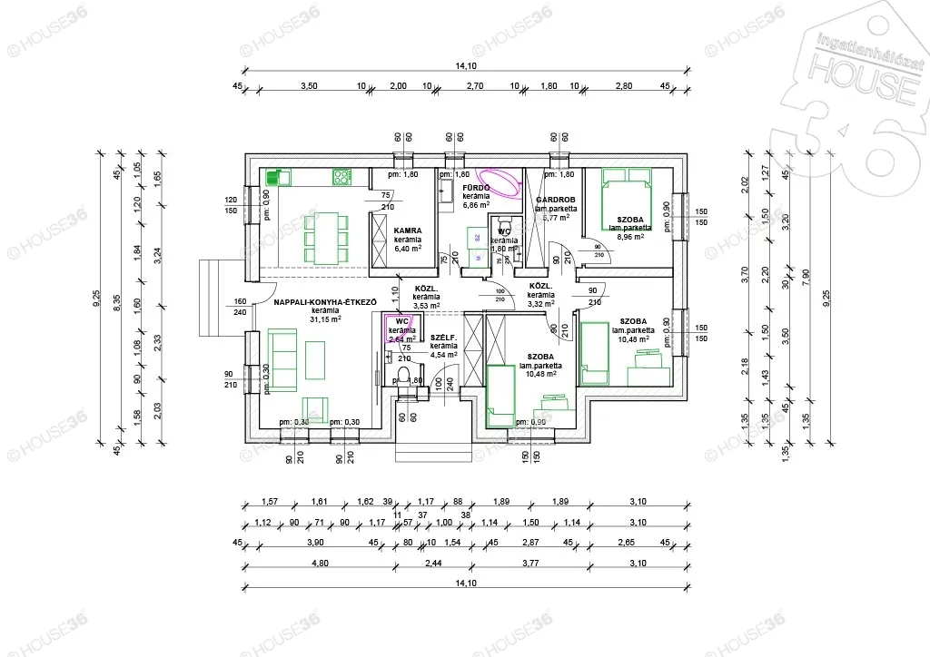 | Fűtés | gázkazán |