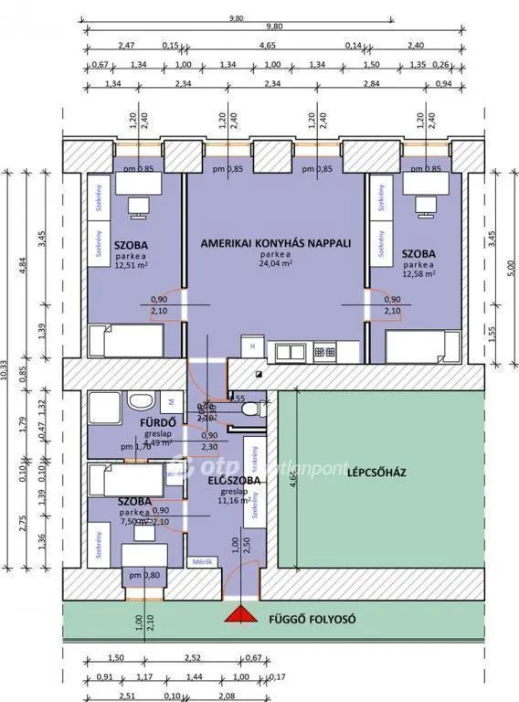 A lakás 3 egész szobával és 1 félszobával rendelkezik, a 4,5 méteres belmagasságnak köszönhetően rendkívül tágas és világos tereket biztosít.