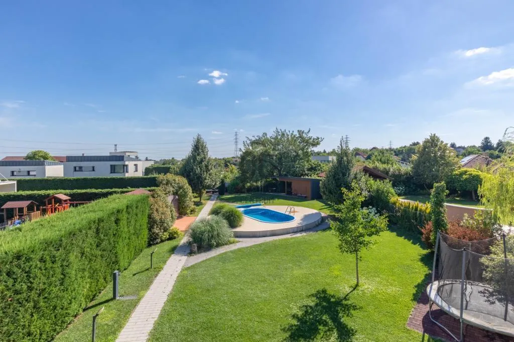 - A medence és pihenő tér és a hangulatos tűzrakó hely a parkosított kert éke.
