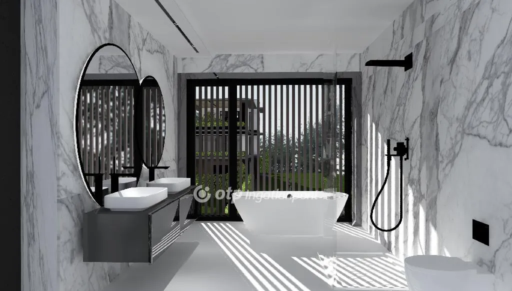 Eladó Luxus villák a Balaton egyik közkedvelt részén! A telek 80 m-re helyezkedik el a Balatontól, mely nyugodt, csendes helyen található. Különleges tervezésnek köszönhetően minden villaház balatoni panorámával rendelkezik. A beruházás több mint 6000 m2-en valósul meg, jelen állapotban kivitelezés alatt. A 13 darab villaház három sorban, egymástól függetlenül helyezkednek el. A kivitelezés folyamán mind az anyaghasználatban és technológiában a legmagasabb minőséget használják fel. A projekt kialakításának és kidolgozottságának köszönhetően egyedi, kivételes beruházás. Mindegyik villa saját parkosított, öntözőrendszerrel ellátott kerttel rendelkezik. A házak egymástól fizikálisan 1,8 m magas borostyán kerítéssel vannak elválasztva, ezzel a vertikális örökzöld fallal biztosítva a természet közelségét, ellenben az egymástól való távolságot a nyugodt kikapcsolódáshoz szükséges intimitást. A házak földszintjén tágas, a mai kornak megfelelően kialakított kertkapcsolatos nappali, étkező és konyha került kialakításra, amely a legtöbbet használt közösségi tér. Az emeleten két darab teljes méretű szoba és hozzá tartozó gardrób került elhelyezésre, valamint egy nagy méretű káddal és zuhanyzóval is ellátott fürdőszoba. Mindkét szoba rendelkezik loggiával, így a természet közelsége itt is jelen van. A felső emeleten található egy nagy szoba gardróbbal és a hozzá tartozó fürdőszobával. Valamint itt található egy több mint 40 m2-es tetőterasz, statikus árnyékolással és balatoni panorámával.