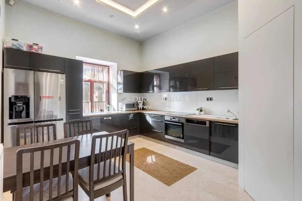Az ingatlan a nappalival a fókuszban csábítja el az érkezőt, ahol a gondosan összeválogatott, minőségi bútorelemek, kiegészítők, drapériák, és világítástechnikai elemek teljes összhangja érvényesül.