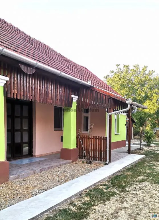 Kellemes kialakítású fedett teraszon áthaladva balra egy az épülethez tartozó tároló szemben pedig a főépületi bejárat található. Bent az előszobából az egyik külön nyíló szoba és egy szép konyha amely étkező is egyben az új tulajdonost várja. A konyhából nyílik a fürdőszoba amely egyben van a wc-vel, és egy másik lakószoba is.