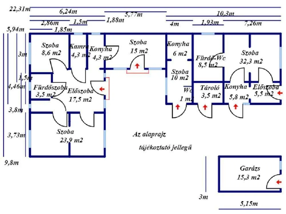 Pest vármegye, Törtel központjában 791 m2 telken egy 78 m2 és egy 72,6 m2 hasznos alapterületű családi ház eladó. Az ingatlan a község központjától 150 méterre, főút mellett található. A két lakóépület összeépített, de külön bejárattal rendelkeznek. Az utcafronti épület vegyes falazatú, jól vízszigetelt, az 1960-as években épült. Két szobából, egy konyhából, egy előszobából, egy fürdőszoba-WC helyiségből és egy tárolóból áll. A tégla építésű ház 2000-ben épült, kiváló tetőszerkezetű, benne három szobával, egy fürdőszobával, egy WC-helyiséggel, egy konyhával, egy előszobával és egy kamrával. A nyílászárók az új épületben jó minőségű fa szerkezetűek és az egyik ablak műanyagra cserélt, míg a régi épületben eredeti állapotúak. A szobák padlószőnyeggel, valamint laminált padlóval burkoltak, a többi helyiség járólapos. Mindkét otthon melegét vegyestüzelésű kandalló biztosítja, az új épületrészben hűtő-fűtő klíma is beszerelésre került. Az ingatlanban vezetékes víz-, villany-ellátás és közműves szennyvíz-elvezetés van, különálló almérőkkel ellátva. Gáz az utcában található. A lakóházak mögötti udvarrész mezőgazdaságilag művelt, szőlővel telepített, mellette egy műhelynek kialakított melléképület található. A telek utcafronti részén egy 15,3 m2 nagyságú üzlet épült, előkerti kerítéssel védve, benne vízkivételi lehetőséggel, szennyvíz-elvezetéssel és WC-vel felszerelve. Az udvarra több gépjármű számára kialakított kapubejáró biztosított. A helyiségek elosztása miatt az ingatlan kialakítása ideális lehet nagycsaládosok részére vagy akár kétgenerációs lakhatásra is. A családi ház elhelyezkedése nagyon jó: iskola, óvoda, vegyesbolt, hivatal, bank pár perces sétával elérhető. A vásárlás finanszírozásában az OTP kedvezőbb kamatozású hitelkonstrukcióival, Babaváró kölcsön és egyéb banki termékek kínálatával tudunk segíteni, díjmentesen, sorban állás nélkül! Az adásvételi szerződés lebonyolításához korrekt ügyvédi közreműködést tudunk ajánlani. Amennyiben felkeltettem érdeklődését, hívjon bizalommal!